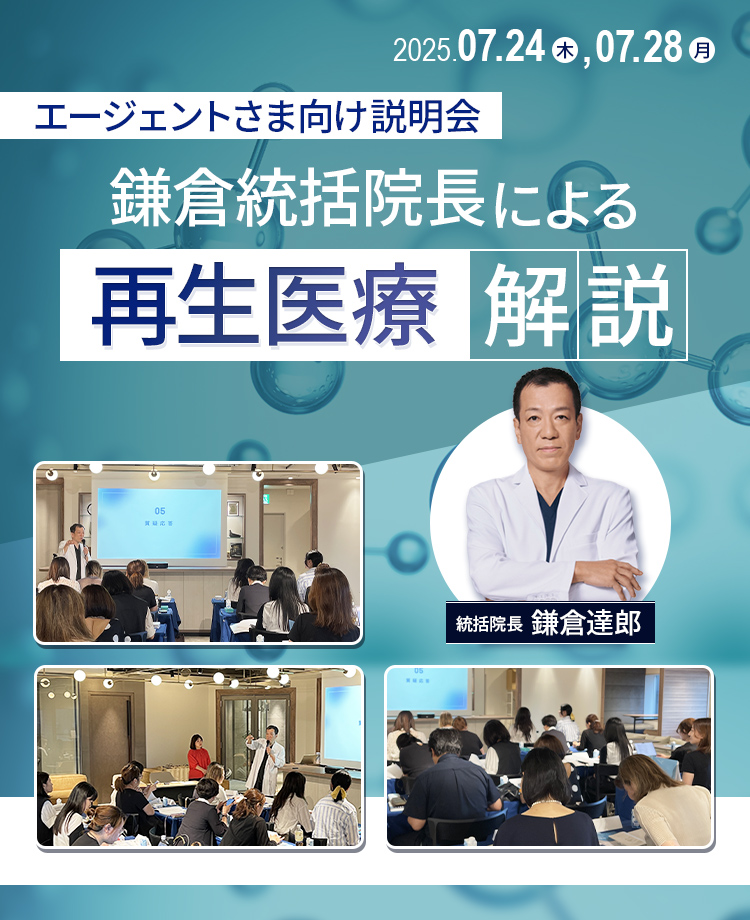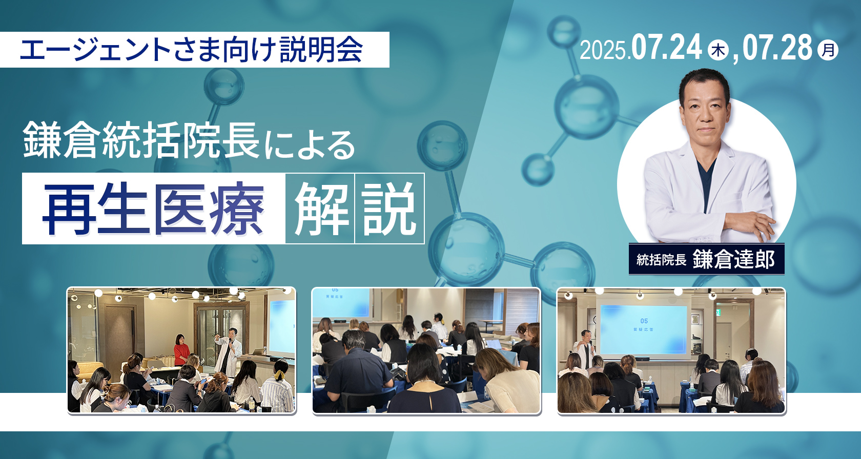 2025年7月24日(木)、28日(月)の2日間に、インバウンドのエージェントさまを対象とした再生医療に関する説明会を開催しました。両日合わせて35名のエージェントさまや通訳の方々にお越しいただきました。